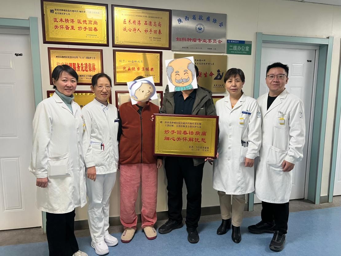 另一块牌匾的背后,同样藏着一段温暖的医患故事。这块刻有“妙手回春祛病痛,细心关怀解忧愁” 的牌匾,马女士(化名),75岁,陕西榆林人,本该安享晚年的她,却被一场突如其来的疾病打乱了生活节奏。绝经后阴道不规则出血、腰部胀痛伴肛门坠胀…… 这些不适的症状,让马女士的生活质量大打折扣。去年10月,她在当地医院进行了宫颈活检,当 “宫颈癌IIIB期” 的诊断结果出来时,马女士如遭晴天霹雳,瞬间陷入了绝望的深渊,一度失去了活下去的勇气。